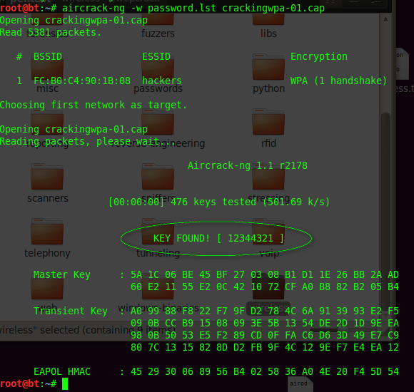 so finally after getting the hand shake all you have to do is use aircrack to crack the password from pasword dictionary list.